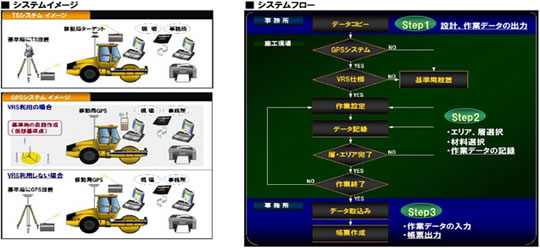 国土交通省は2012年3月、「TS・GNSSを用いた盛土の締固め管理要領」をとりまとめ、従来の砂置換法やRI計法につづく第3の管理方法として位置づけました。TENavシステムはTS、GPSの両方に対応しており、河川・道路土工・舗装工の情報化施工を支援します。 現場の状況、施工内容に合せてシステム機器を選択できます。